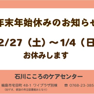 年末年始休みのお知らせ