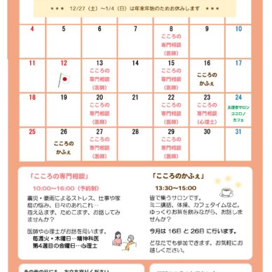 サロン「こころのかふぇ」2026年1月のご案内